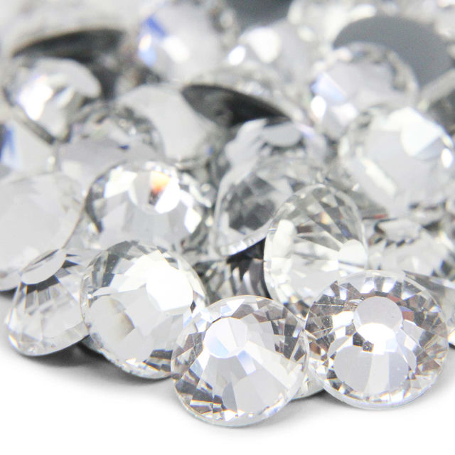 Our Machine Cut Crystal rhinestones are made to imitate Swarovski and Preciosa stones at a fraction of the cost, and are made out of crystal. These stones contain gray glue and last on garments wash after wash. Please view our hot-fix use guide for more information.