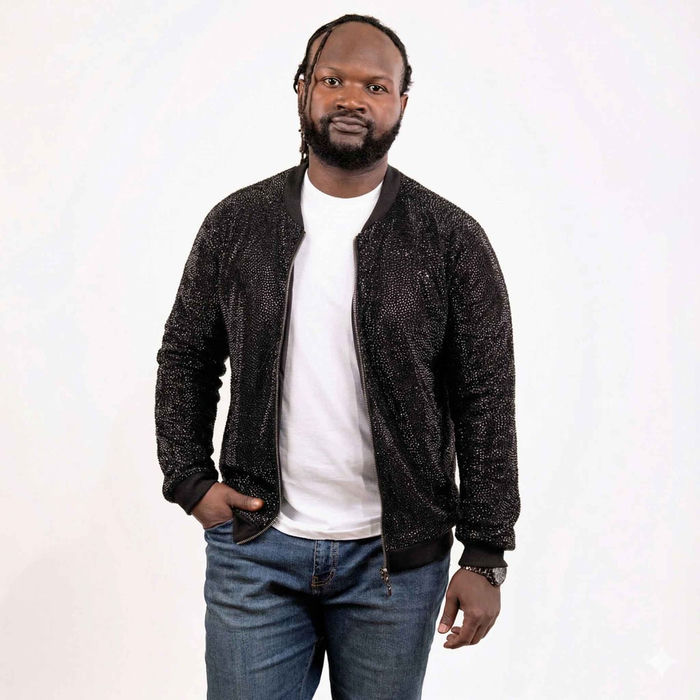 Strass Rhinestone Bomber Jacket - Black - Extra Large