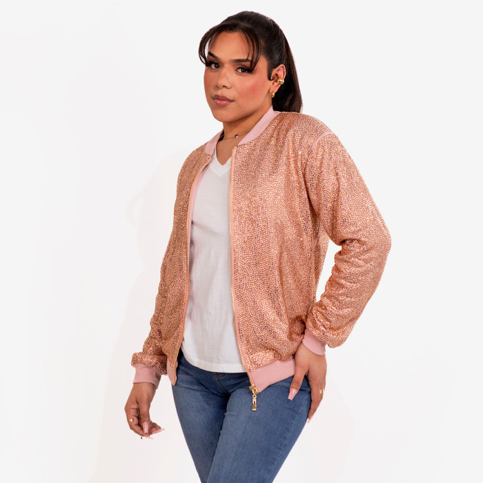 Description / Strass Rhinestone Bomber Jacket - Pink - Medium