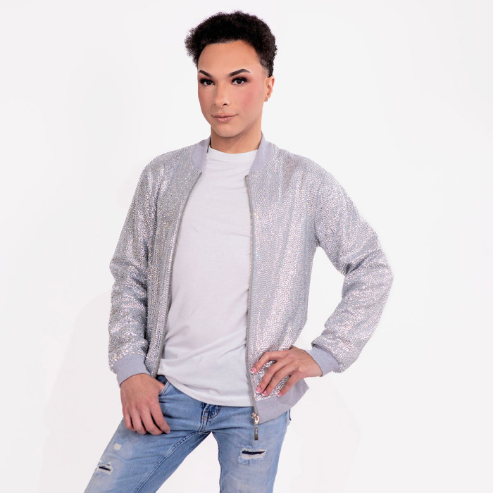 描述 / Strass Rhinestone Bomber Jacket - Silver - Small